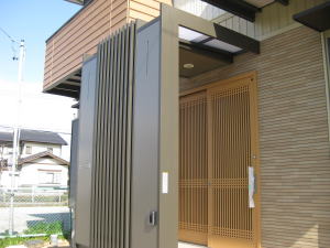 道路境界から近い距離にある玄関ポーチにはエントランスポーチを設けて、自動車や歩行者からのダイレクトな視線をやわらげています。