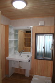 内部は一部(和室2部屋と仏間)を残して間取りを変更し、柱や梁など構造材を補強して、住宅設備機器(システムキッチン・システムバス・トイレ一式・洗面化粧台など)を全て新調しました。