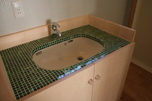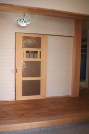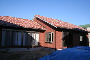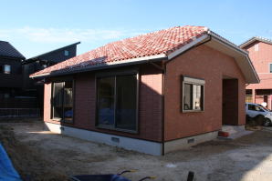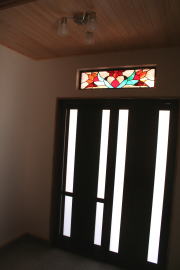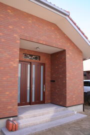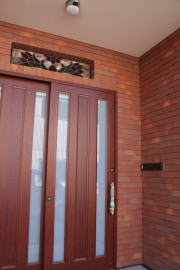 南欧風の防災S形状瓦(ランダムカラー)とレンガ調タイル外壁(一部はレンガ調サイディング張り)、内部の居室は和室も多いですが、一部に特殊な装飾タイル壁仕上をしたり特注ステンドグラスを組み込んだ創作建具など、お施主様のこだわりをふんだんに採り入れた特殊仕様のお住いです。