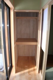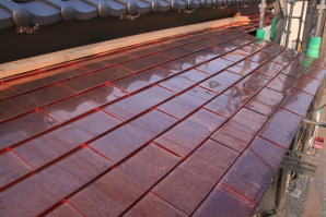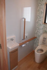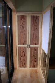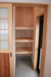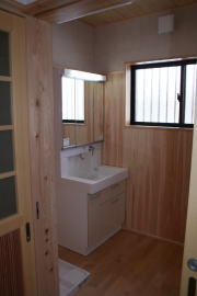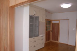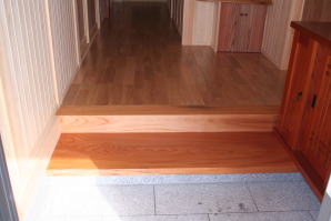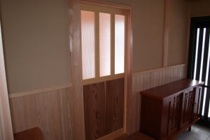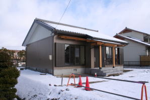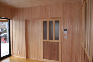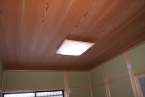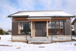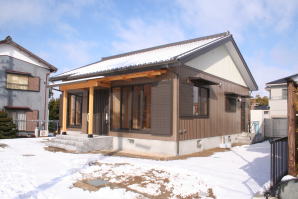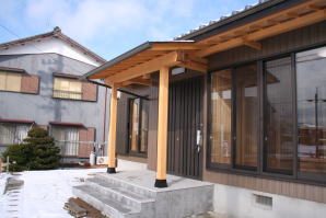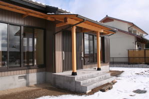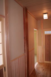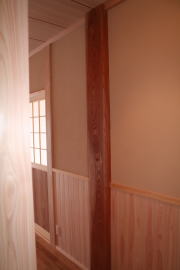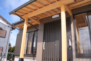 | 内装概要 | 「コンパクトなお住い」だからこそ「使い勝手」を重視しており、動線(住んでいる人の動き)にストレスが発生しない様に配慮して、部屋と通路部分をゆったり大きく間取りしました。 玄関ポーチは御影石貼り仕上として、上部の玄関ポーチ庇は大工造作にて作成、その庇の屋根面は銅板ぶきで豪華な玄関ポーチ空間となりました。 (写真は、銅板ぶき屋根〜御影石貼りの施工中の様子をご紹介しています。) 真壁仕上(柱あらわし)、珪藻土の左官塗り仕上、東濃桧の無節板張りを多用した内装仕上(内壁面と天井面)、天然素材に癒される室内空間のお住いです。 東濃桧の大黒柱24cm角とケヤキの母大黒柱22cm角、お住いの中心でしっかりと大屋根の荷重を支える頑強な構造になっています。 |