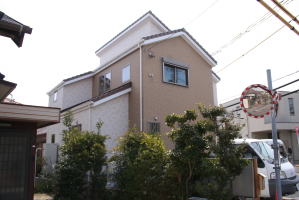 経年劣化によるメンテナンスの頻度を少なくする「ニチハ製サイディングFuge(フュージュ)」を継ぎ目シーリング無の「ジョイントレス工法」で施工、スタイリッシュかつ温かみのある外観の洋風住宅です。
