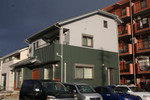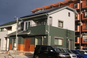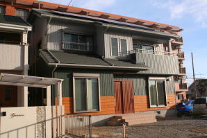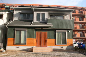 | 外壁仕上 | ガルバリウム鋼板(角波)張り 南の腰壁:杉(赤味)板 鎧張り |