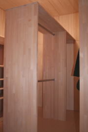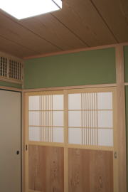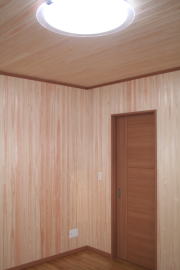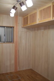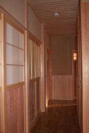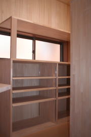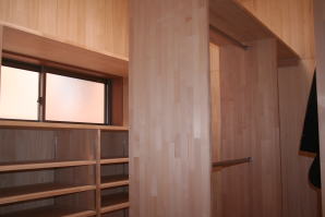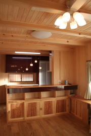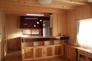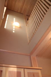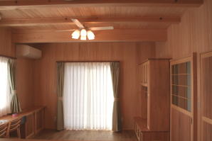 | 内装概要 | このS様邸は国からの補助金を取り仕切っているSII(環境共創イニシアチブ)という財団法人が定めている「ZEH(ゼロエネルギーハウス)基準」に近い環境性能を持つエコロジーハウスで、高レベルの外皮断熱性能を「セルロースファイバー断熱材」でクリア、大容量の太陽光発電システムとHEMS(ヘムス〜家庭用エネルギー管理システム)を搭載しています。 2階の大屋根はドイツ屋根形状となっており、その棟(むね〜屋根の一番高くなっている部分またはライン)位置をずらす事により、大きな小屋裏空間を設けて固定階段を造り付け、そこには広くて快適な書庫兼くつろぎスペースを設けました。 お施主様の御要望により、水周りを除いて「東濃桧の無節板などのムク(天然木)板張り仕上」もしくは「左官塗り仕上」という天然素材づくし内装のお住いになっています。 |