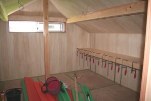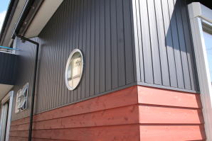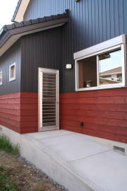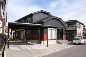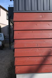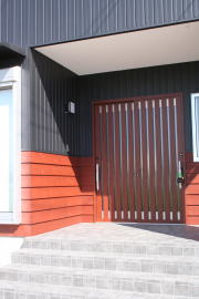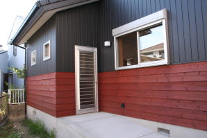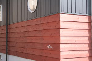 | 外壁仕上 | 上壁:ガルバリウム鋼板(角波) 腰壁:杉(赤味)板 鎧張り仕上 |