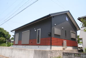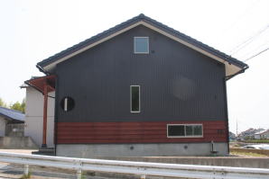 | 外壁仕上 | ガルバリウム鋼板張り仕上 腰壁:杉赤斜面板を鎧張り仕上 |