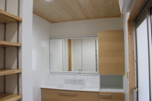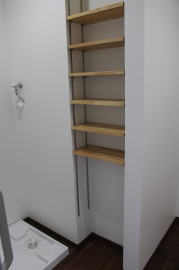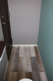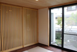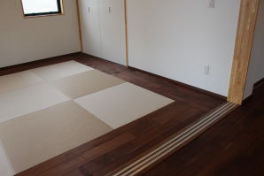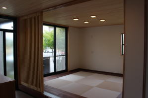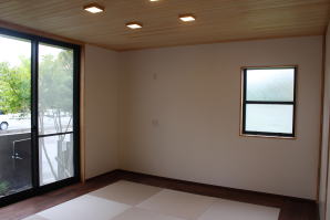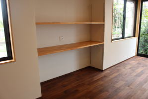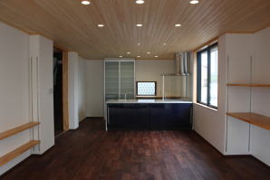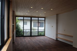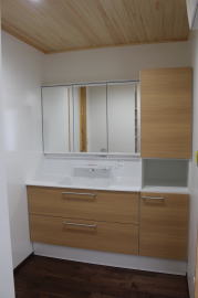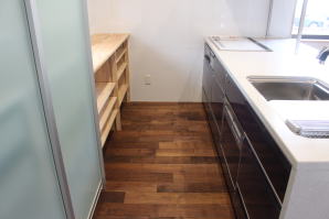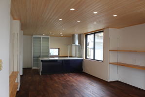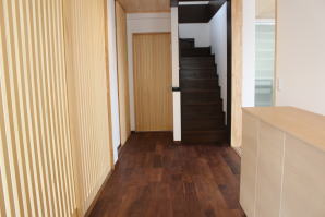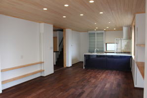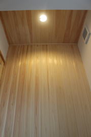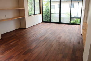 | 内装工事 | 主な床仕上:ウォルナット天然木 (床レベル調整 バリアフリー化) 主な壁仕上:壁紙クロス貼AA級 主な天井面:桧(ヒノキ)板張り |