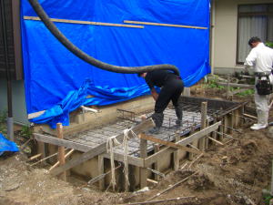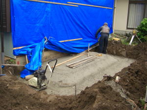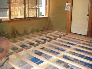 | 内装概要 | 築後で約20年が経過した「壁土工法の在来木造住宅」の増築および大改修リフォームです。 1階の東部分「使用頻度の低い和室と縁側」を解体してダイニングキッチンに造り替え、洗面室と浴室(ユニットバス)の約2坪分を新たに増築しました。 ちなみに、このページの写真は降順(上が完成時の様子〜下が工事の開始)に掲載しており、7月に基礎工事を開始した時の様子が一番下に配置されています。 改修部分の壁土については「雨漏れ等の痕跡が全くなかった」ので現状のまま残して、畳敷きだった床部分の下地組みを床束まで解体して、廊下とバリアフリーになる様に高さを合わせて造り替え、高密度の床用断熱材を取り付けて、床暖房用の銘木フロアを床仕上に施工しました。 住宅設備機器(システムキッチン、キッチン収納、ユニットバス、洗面化粧台、トイレ設備、ガス給湯熱源機)が一通り揃ったので、店舗兼住宅だった母屋を解体しても「この横屋のみで御施主様ご一家が生活できる」ようになっています。 |