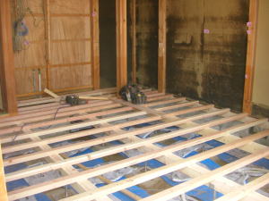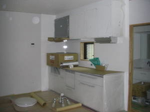 住宅設備機器(システムキッチン・キッチン収納・ユニットバス・洗面化粧台・洗濯機パン・トイレ設備・ガス給湯熱源器等)を新設して、DKに快適設備「ガス温水式の床暖房」を施工しました。