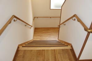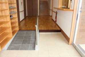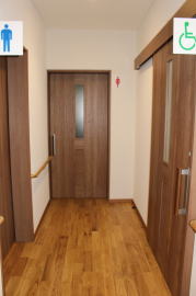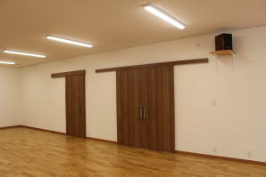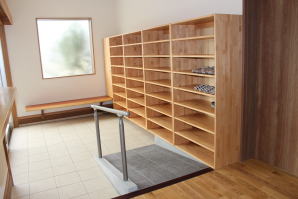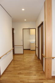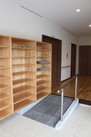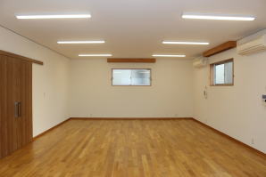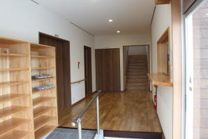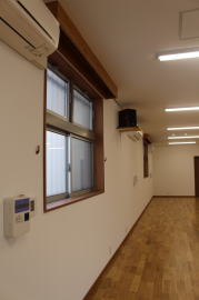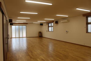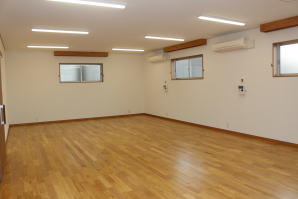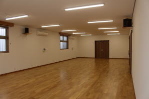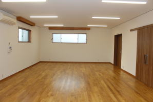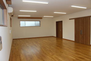 | 内装概要 | 100人以上が集まれるように造り付けた大容量の玄関収納をはじめ、建物内に多数の収納スペースを設計した「2階建て公民館(公共建築物)」です。 ランニングコスト(光熱費〜電気代)を抑えるため、ZEH(ゼロエネルギーハウス)規準の断熱性能を楽々クリアできる高密度グラスウール断熱材を外皮断熱材に使っています。 外壁仕上材はニチハ製の高耐久サイディングボード厚16を3色使いで採用しました。 つみ木を組み合わせたキューブ型フォルムも相まって、すっきり都会的な印象(アーバン)の外観に仕上っています。 1階と2階の大会議室はもちろん、建物の大半の床仕上に「ナラ材ムク(天然木)フローリング」を張って落ち着いた高級感を演出して、プロジェクターやスピーカー等の充実したオーディオ設備を各所に設けました。 屋外は玄関エントランス部のタイル貼およびスロープ造成といった外構工事をおこなって〜完了後にシンボルツリーのオリーブの木を玄関前に植樹し、その後で他の造園工事も執り行いまして、令和2年の3月に竣工お引渡しをいたしました。 |