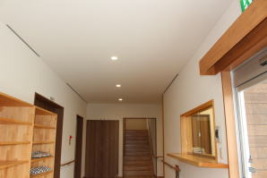 ZEH(ゼロエネルギーハウス)でも使われている「高密度グラスウール断熱材」を外周り壁内に気密充填施工して、エアコン等の空調設備を使った際に少ない消費電力でも快適温度を保つ事のできる「とても省エネルギー性能の高い」公共建築物です。