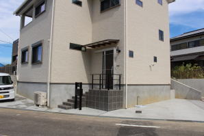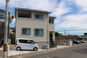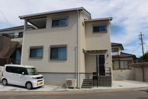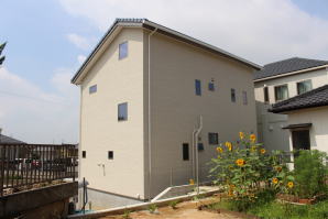 外壁材は経年劣化によるメンテナンス頻度を少なくする「ニチハ製サイディングFuge(フュージュ)」を平継目シーリング無で施工〜屋根仕上は表面凹凸の少ないフラット形状の防災平板瓦、20年以上も再塗装等メンテナンス費用が発生しません。