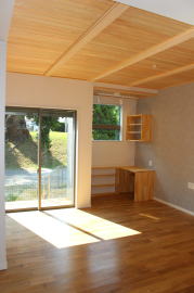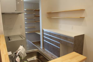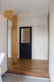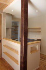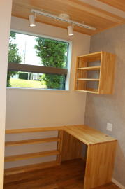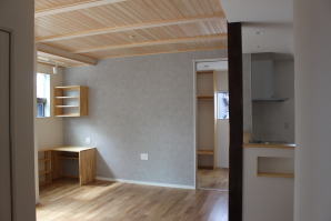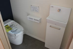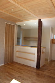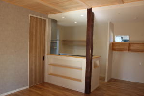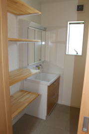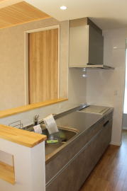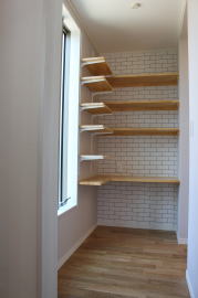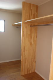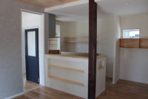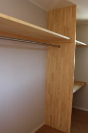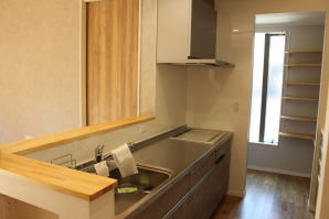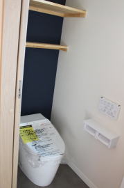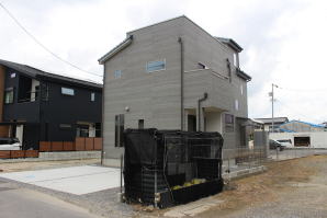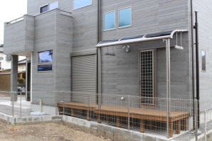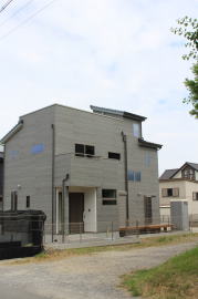 | 内装概要 | 耐震等級3かつ「外皮平均熱還流率(UA値〜屋外から居住スペースへの熱の伝わりにくさ)」を「ZEH(ゼロエネルギーハウス)基準」以上(設計値0.54なのでZEH基準の0.6クリア)に高めた高性能な長期優良住宅です。 屋根は防災瓦葺き仕上、外壁は高耐久サイディング(20年以上の期間ずっとメンテナンス不要)のニチハ製Fuge(全体:木目調グレー色、玄関部:ボーダータイル調)を採用しました。 「外壁周りの壁内」とバルコニー下部分など「小屋裏空間の狭い部分の天井内」には木造の構造体(柱や梁などの家の骨組)と相性の良い「調湿機能を持つ羊毛断熱材ウールブレス」を使って結露するのを防ぐ様に設計しており、構造耐久力をずっと維持可能な「末永く住める家」です。 お住い中央のLDKから各部屋に動線がつながっており、主寝室に組み込んだ大型ウォークインクローゼット、2階ホールのスタディスペース、固定階段で屋上階から出入りする屋上バルコニー等、お住いになる方の使い勝手を優先した間取りとなっています。 |