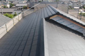 | 外壁下地 | 桧(ヒノキ)ドウブチ下地 | 屋根 | 防災平板(フラット)瓦ぶき |