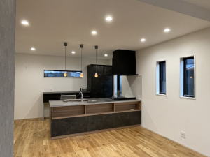 巾2.7m対面フラット型の高級システムキッチンを採用したLDK、壁・床・天井を防音マットでパックした防音タイプ音楽室、約3.6mの天井高で一部にロフト空間を設けた主寝室など、お施主様ご家族のこだわりを詰め込んだ唯一無二のお住いです。