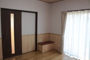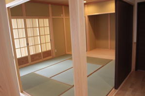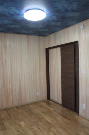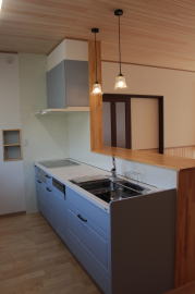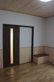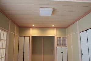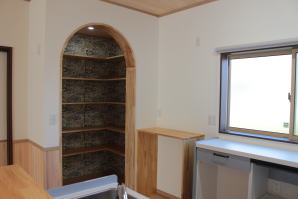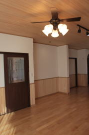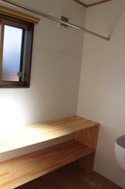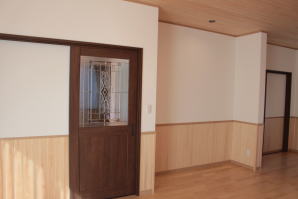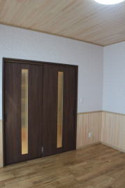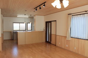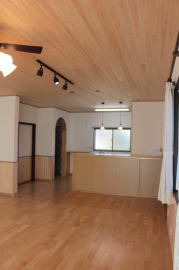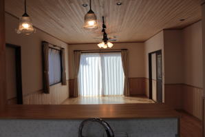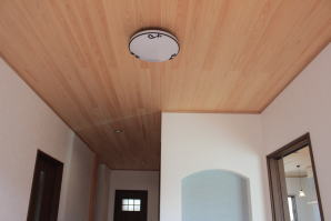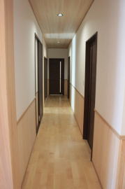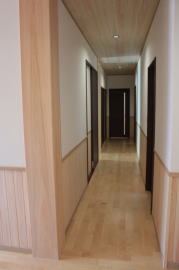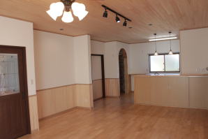 | 内装概要 | お住いの外壁仕上材に高耐久仕様「ニチハ製サイディングFuge(フュージュ)」を採用して、サイディング外壁仕上の一番の弱点である「継ぎ目シーリング」を無くす事で「経年劣化による外壁メンテナンス(再塗装やシーリング再施工)の頻度とコスト」を大幅に少なくしました。 すっきりスマートな印象のフラット形状瓦ぶき仕上の上三建ち形状の大屋根、その内部には約18坪の広い小屋裏収納を設けており、1階から固定階段を上って出入りする構造としたので、季節物や様々な嵩張る大物も安全に運んで収納できる使い勝手の良い収納空間となっています。 当社の所有している中で一番太いクラスの梁(はり)・桁(けた)を軸組(じくぐみ〜家の主要な骨組)に使った「総桧造り本格仕様(当社の最高ランク)」のお住いです。 お住いの中央に東濃桧の通し柱(とおしばしら〜1階と2階を貫く柱)26cm角を「大黒柱」として据え付け、大黒柱と対となる「母大黒柱」に同じく東濃桧の通し柱(長6m21cm角)を配置した頑強な構造となっており、内装仕上(床面・壁面・天井面)に「左官塗り仕上」や「ムク(天然木)仕上」を多用して住み心地の良い家に仕上りました。 |