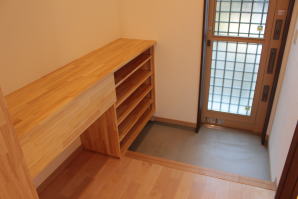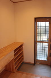 母屋(おもや)の建て替え・新築を意味する本屋普請(ほんやぶしん)、お客様が出入りする正面玄関の他に家族が普段使いする勝手口土間(第2玄関)が有ります。